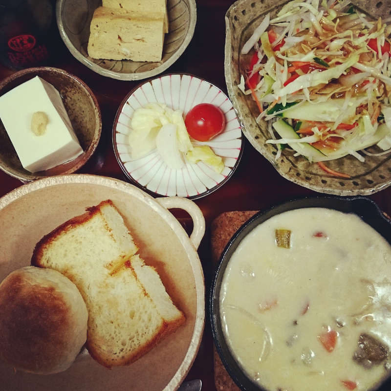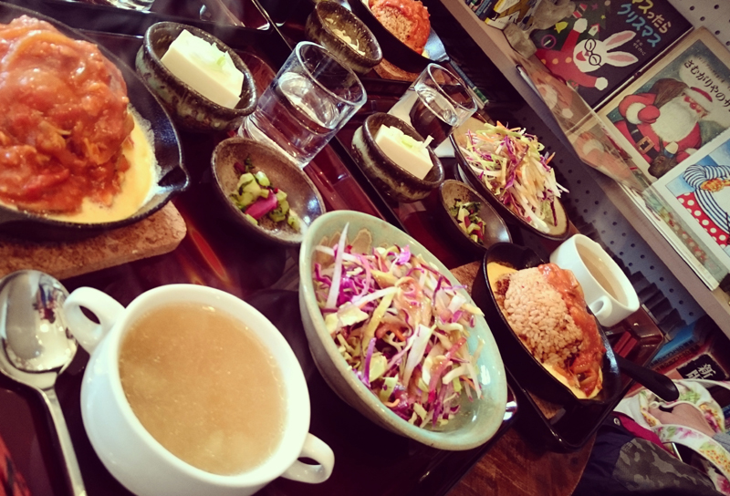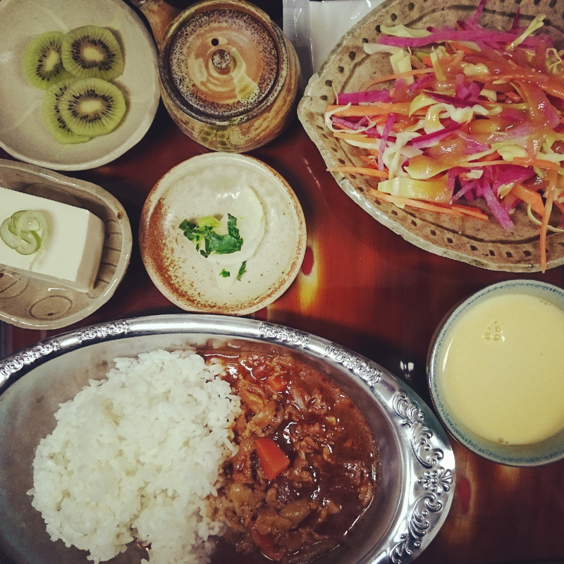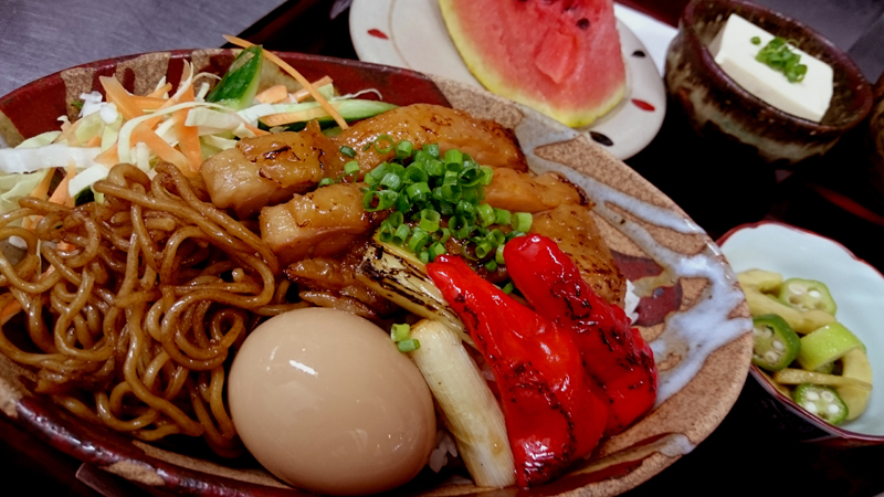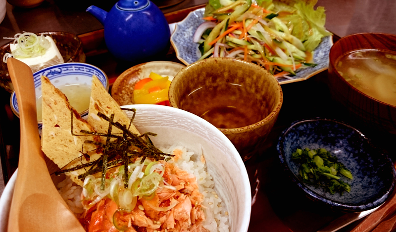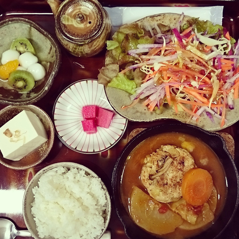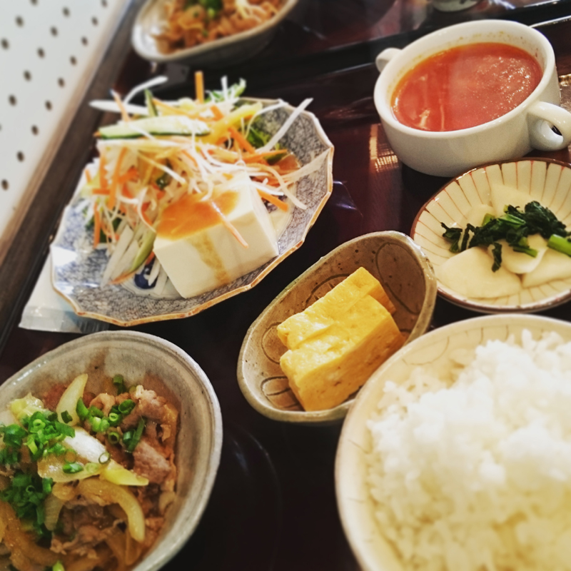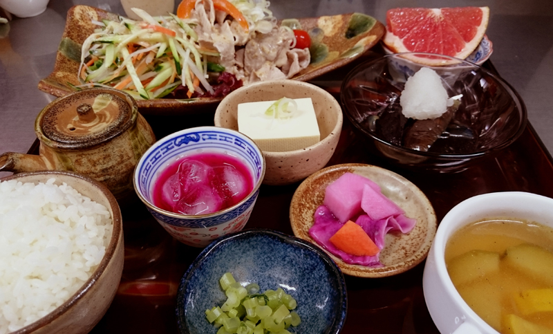 ここの写真は、昔撮ったものが多いです。今は物価高で、昔ほど野菜を沢山盛ったり、小鉢を色々付けたりはできませんが、ご了承下さい。